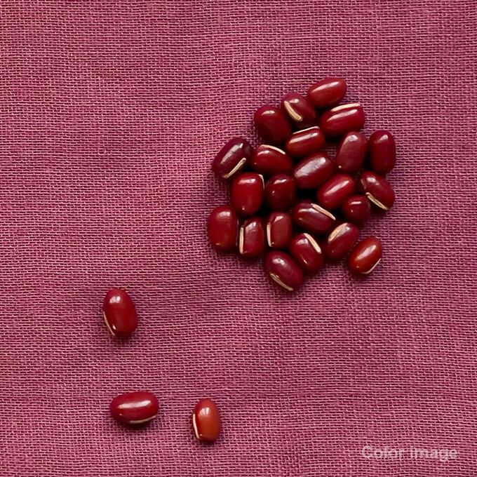 実物の小豆の色よりも紫みが強く、えんじ色とワイン色の間のようなくすんだ赤。