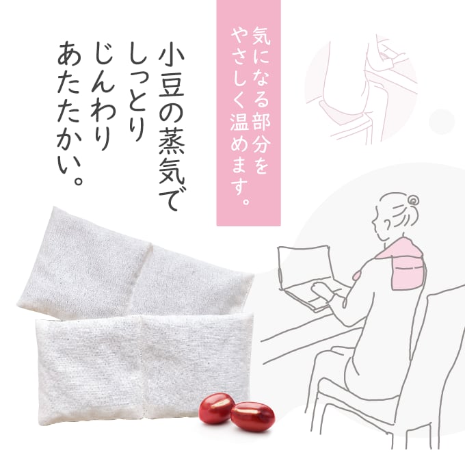 小豆から出る天然の蒸気が、しっとり・じんわり気になる部分をやさしく温めてくれます。