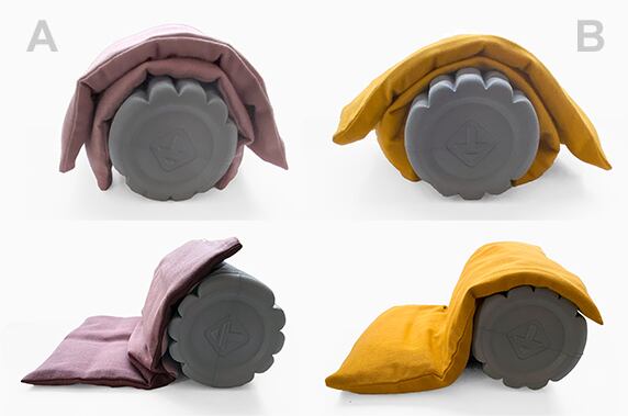 * Bタイプは、おしりなどの曲面・凹凸面にフィットする反面、小豆が片寄ります。均一に温めたい場合は、Aタイプがおすすめ。
